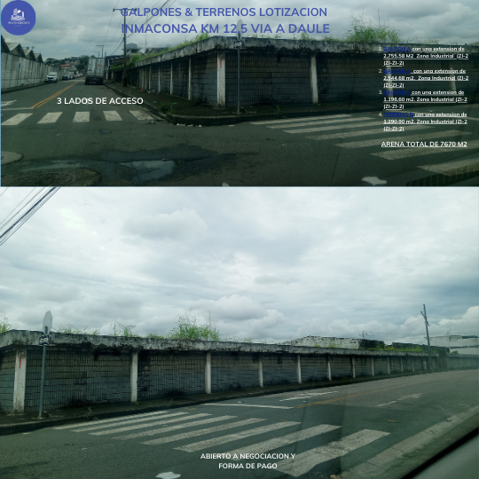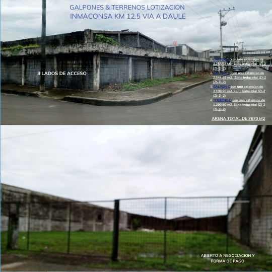 Industrial-GALPONES & TERRENOS LOTIZACION INMACONSA KM 12.5 VIA A DAULE